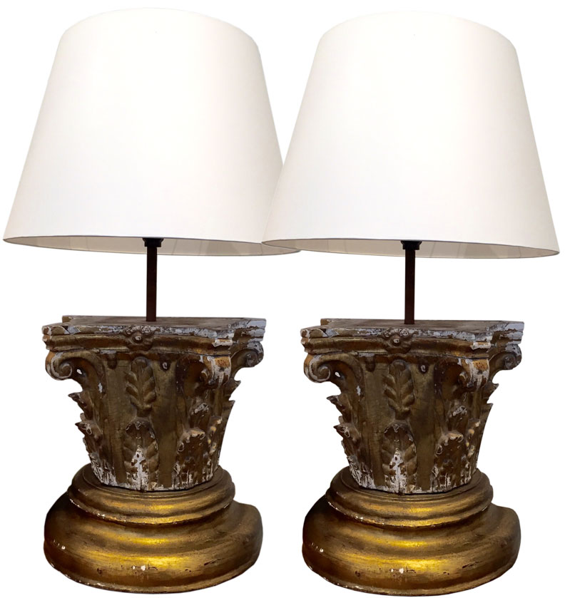 Vintage Lamps Chinoisserier Inspired Aged Wax Wood With String Shade
