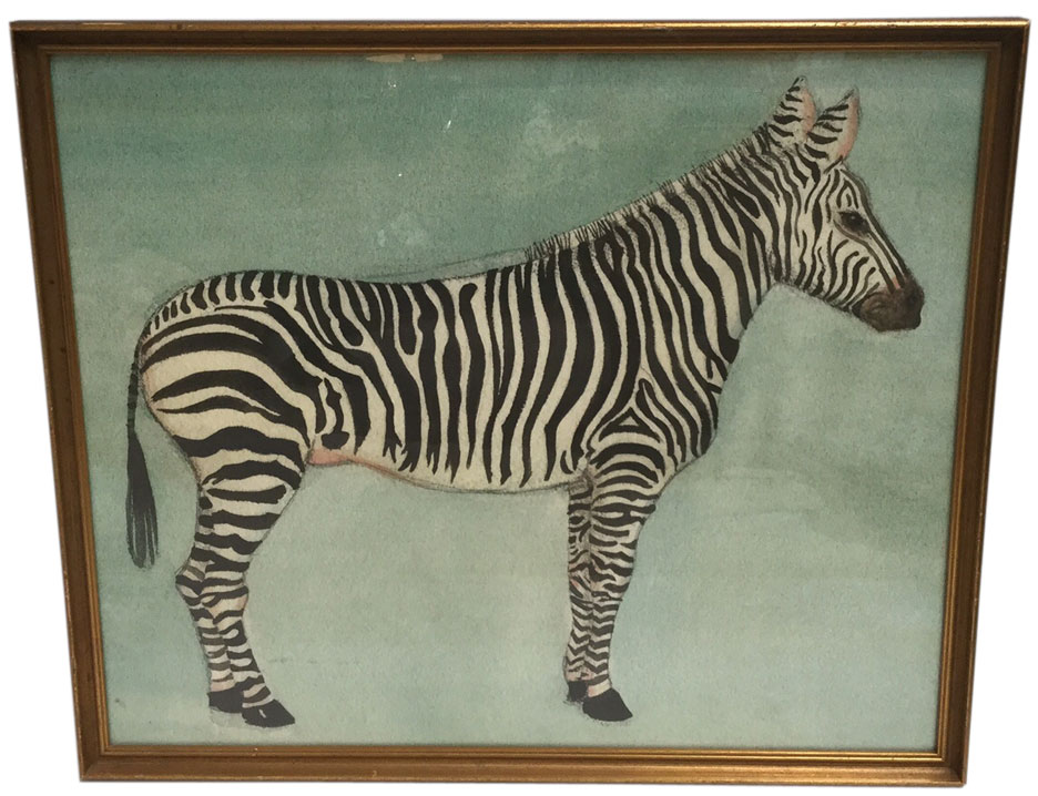 Zebra Watercolor Custom Framed in Gold
