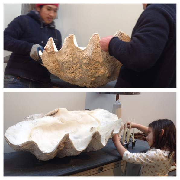 A genuine super heavy clam shell or should I say wine cooler, food display or just plain gorgeous!!