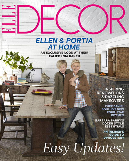 I love Ellen, don't you?  It turns out she has a talent and passion for decorating.  Her home in the mountains of Santa Monica, California has quite a few familiar pieces available on the website HERE.  I was delighted to see the cover of this month's ELLE DECOR featuring almost the identical antique cabinet on the right in the picture as I have available, below.
