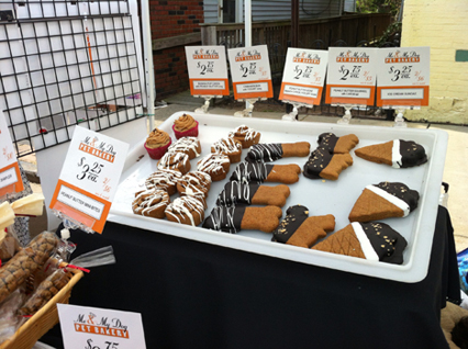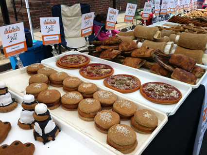 A closer look revealed they were DOG TREATS!!!! That's right homemade  dog treats. Faux cinnamon buns, s'mores, burgers, mini pizzas, cupcakes....we were drooling AND laughing!!