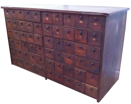 Available - 19th century General Store Cabinet, multi drawer with small knobs.  An awesome piece at the shop right now!