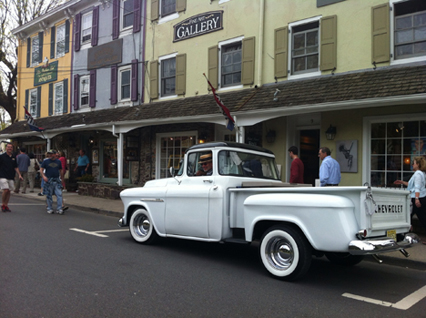 We sported my husband's favorite pastime, White Lightning.   A 1955 Chevy pickup. He's been on his back all winter underneath his toy getting it ready for spring!  Looking cute wearing the vintage straw boater hat I got him when he's behind the wheel.  He doesn't however use the corn cob pipe!