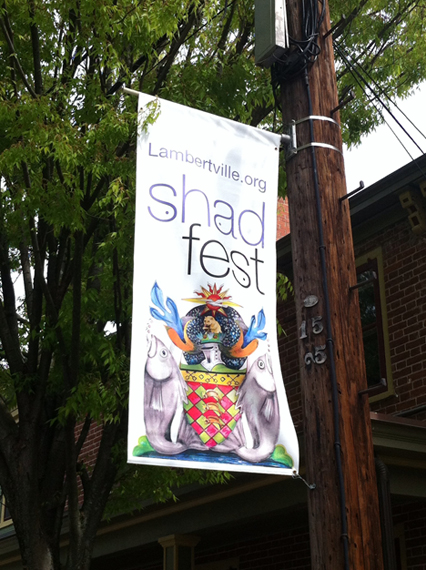 It was The Shad Fest, a fun event celebrated in Lambertville for the last 32 years.  The shad fish spends most of its life at sea but in the spring returns to the rivers to spawn.  The shad put up such a terrific fight it is a favorite catch of fisherman. I saw no anglers Sunday and believe there is a current ban on shad fishing due to their diminishing numbers but the FESTIVAL CONTINUES!  We all love a good party, don't we?
