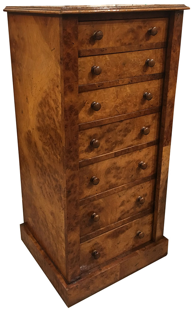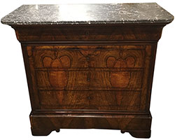 Period Art Deco Marble Top Walnut Bookmatched Front Commode With Original Stone FRANCE