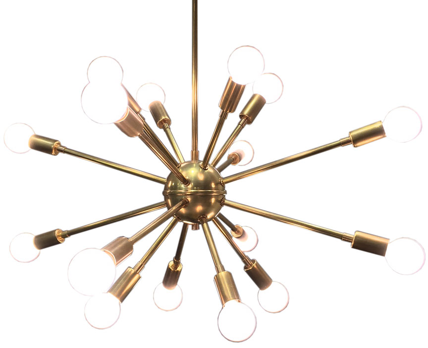 Sputnik Chandelier in Brass or Nickel, round or flat top