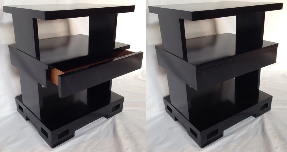 Mid-Century 3 Tier Laquered Side Tables with Drawer