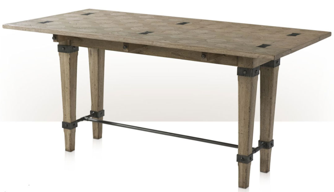 Antiqued Wood Console/Dining Table Steel Collars and "H" Stretcher on Legs